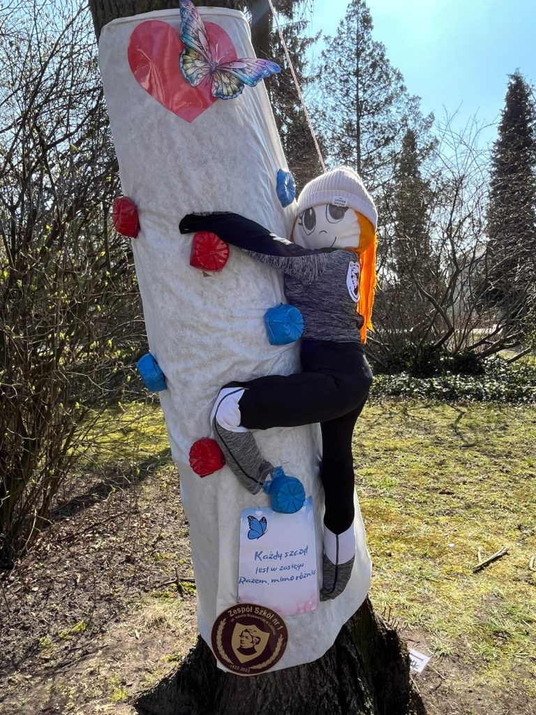 Kolejnym ważnym punktem było ozdabianie drzewa w Alei Autyzmu – symboliczny gest wsparcia i solidarności z osobami w spektrum autyzmu. Nasza szkoła wybrała wspinaczkę jako motyw dekoracji – bo każda droga jest wyjątkowa, a najważniejsze to wspierać się nawzajem!