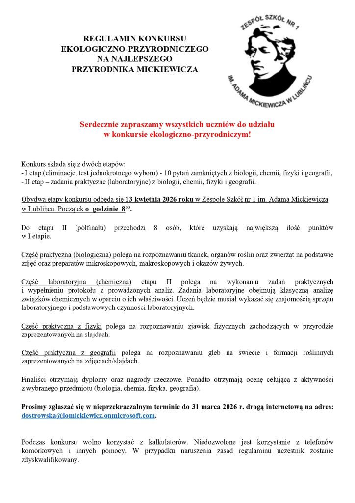 Konkurs na Najlepszego Przyrodnika Mickiewicza!