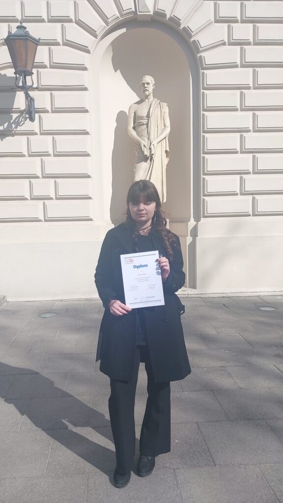 20 i 21 marca 2026 roku na Wydziale Dziennikarstwa, Informacji i Bibliologii Uniwersytetu Warszawskiego odbył się centralny etap Olimpiady Wiedzy o Mediach, w którym wzięło udział aż 140 uczestników z całego kraju. W tym zaszczytnym gronie znalazła się także uczennica Zespołu Szkół nr 1 im. Adama Mickiewicza w Lublińcu, Hanna Matlik z klasy 3b1.
