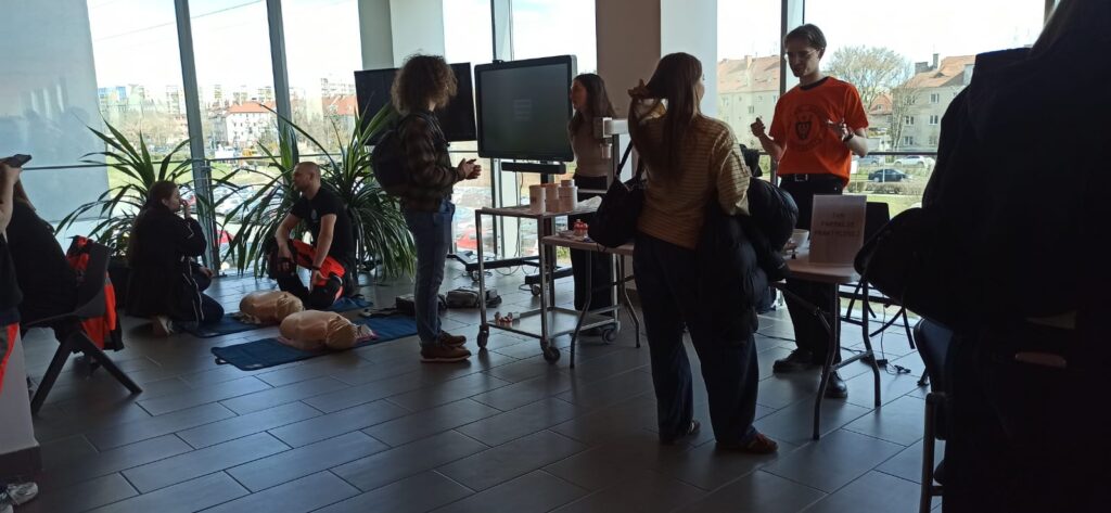 Uczniowie uczestniczyli w wykładach i spotkaniach informacyjnych, a także w zajęciach praktycznych, m.in. warsztatach szycia chirurgicznego oraz ćwiczeniach z wykonywania wkłuć dożylnych na trenażerach. Po zakończeniu części edukacyjnej udaliśmy się na wrocławski Rynek.