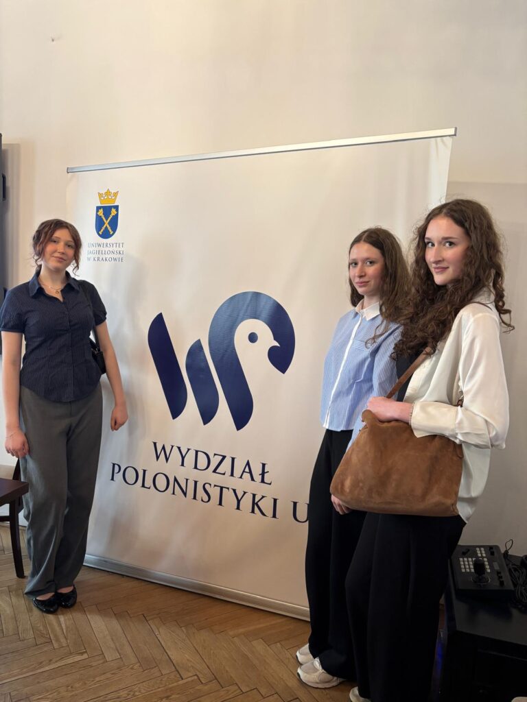W dniu 17 kwietnia 2026 r. uczniowie naszego liceum, wraz z nauczycielkami języka polskiego Cecylią Ochman i Sylwią Kansy, wzięli udział w ogólnopolskiej konferencji naukowej „Ars consolandi. Konsolacja w ujęciu komparatystycznym”, zorganizowanej na Wydziale Polonistyki Uniwersytetu Jagiellońskiego. Wyjazd odbył się w ramach współpracy naszej szkoły z panią profesor UJ Olgą Płaszczewską, która od kilku miesięcy wspiera rozwój humanistycznych zainteresowań naszej młodzieży.
