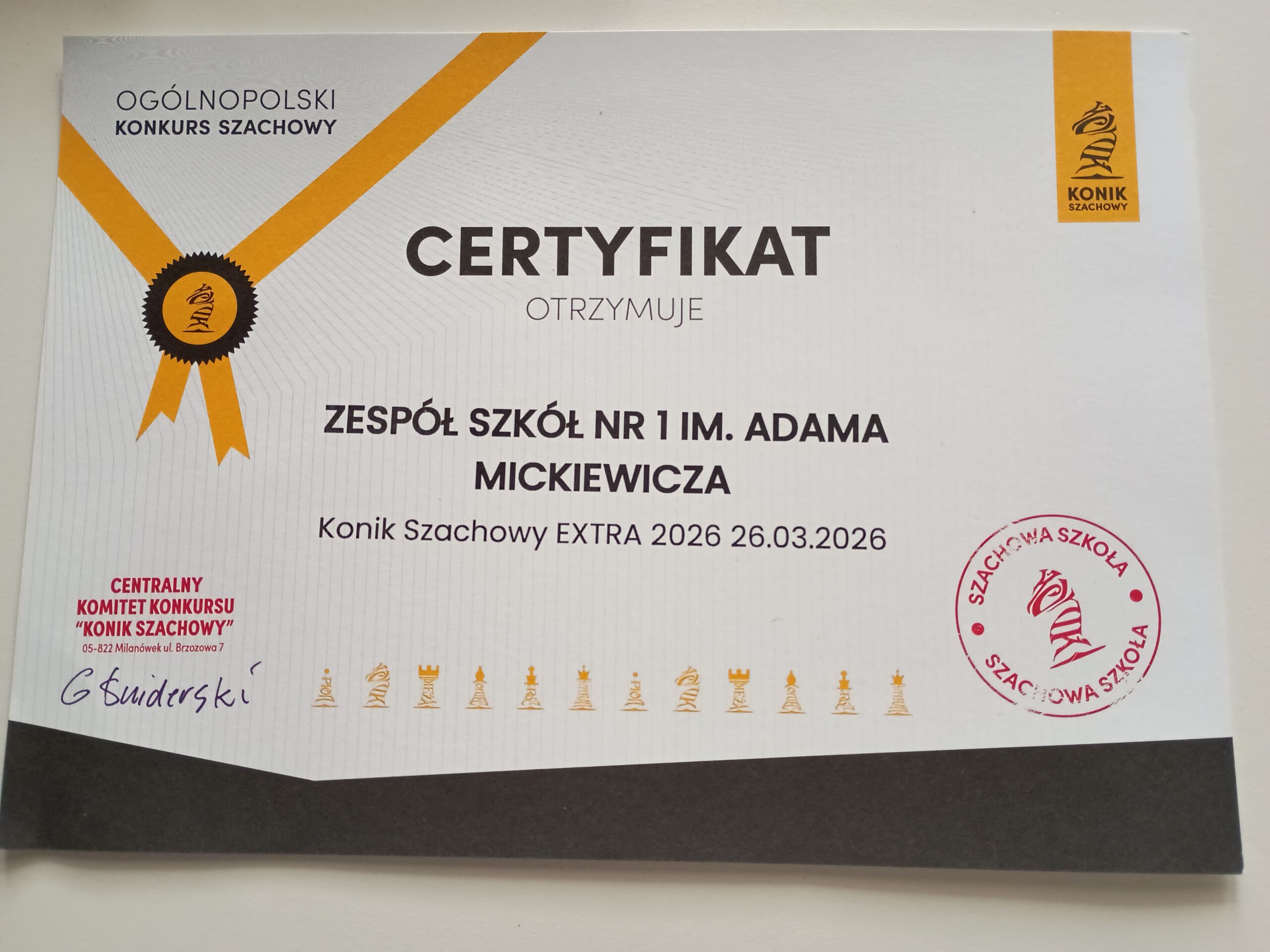 W dniu 26 marca 2026 r. 17 uczniów naszego liceum wzięło udział w wiosennej edycji Ogólnopolskiego Konkursu Szachowego „KONIK SZACHOWY EXTRA”.
