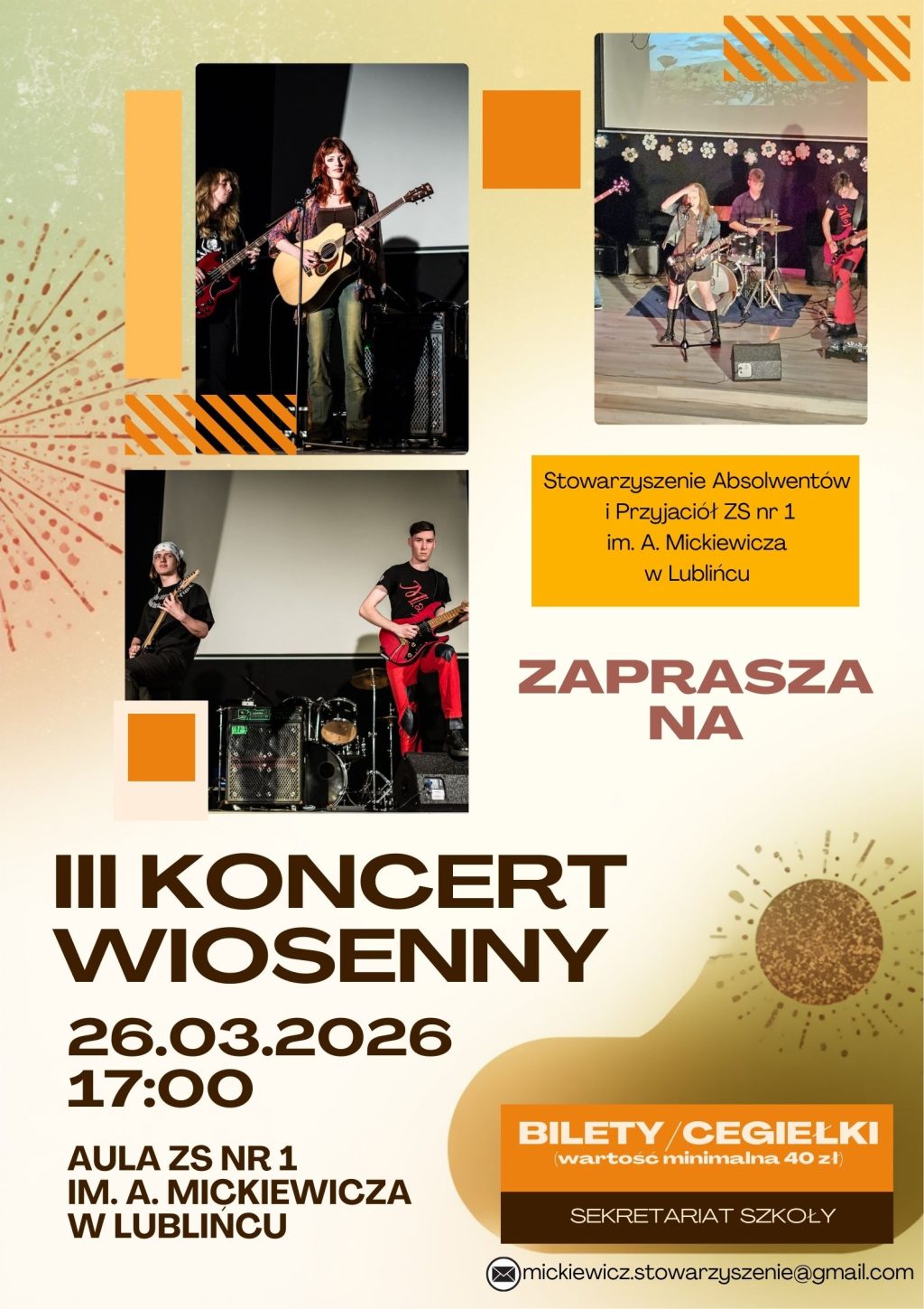 Stowarzyszenie Absolwentów i Przyjaciół ZS nr 1 im. Adama Mickiewicza w Lublińcu zaprasza serdecznie wszystkich uczniów, nauczycieli, absolwentów i sympatyków szkoły na trzecią odsłonę Koncertu Wiosennego. Koncert przygotowywany przez naszych uczniów i absolwentów będzie wyjątkowym spotkaniem pełnym muzyki, radości i wiosennej atmosfery. W programie usłyszą Państwo różnorodne utwory w wykonaniu młodych artystów oraz absolwentów, którzy…